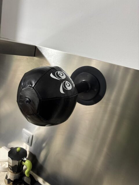 Han brukade studsa mot väggarna – nu studsar han mot påsen. Det är roligt, säkert och ger honom ett sätt att förbränna energi varje dag. Han skrattar hela tiden och återkommer till det – mycket bättre än skärmtid.